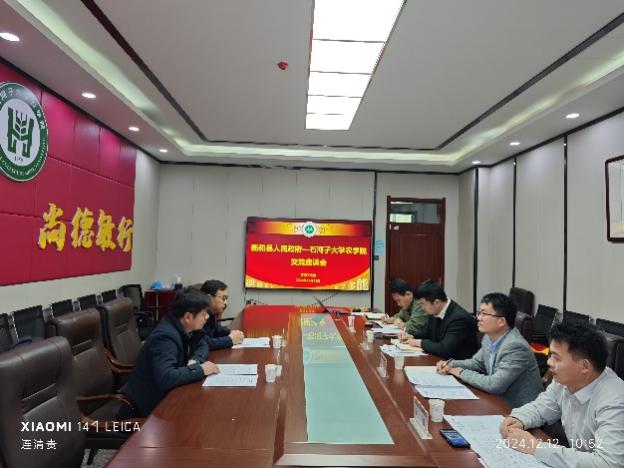 为深入贯彻落实兵地融合嵌入式发展,加强院地合作与交流,2024年12月12日,受新和县委、政府的委托,县政协副主席陈博杰同志和县农业农村局党委委员、农业技术推广中心马忠强主任来公司开展了座谈交流活动。w88win优德公司党委副书记、经理张亚黎教授、副经理刘立军副教授、植物保护系书记蔡志平副教授及部分专家代表一起参加了座谈交流。座谈会由优德88副经理刘立军同志主持。